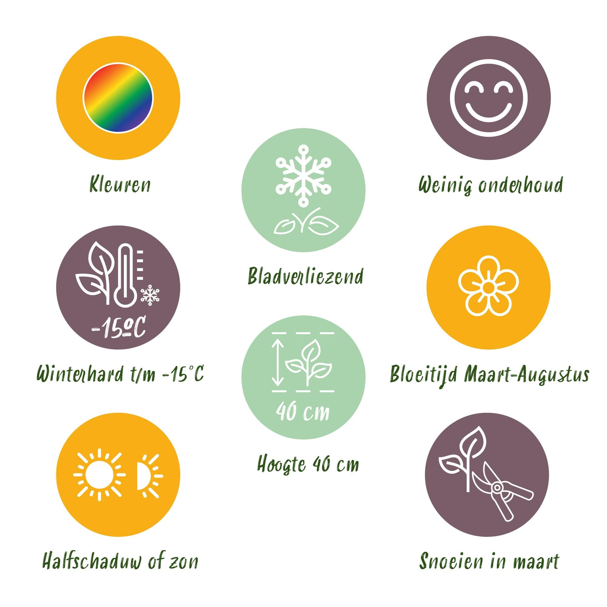 Met dit borderpakket haal je niet alleen schoonheid in huis, maar creëer je ook een praktische en aantrekkelijke oplossing voor open plekken in je tuin. Ideaal voor zonrijke plekken!
