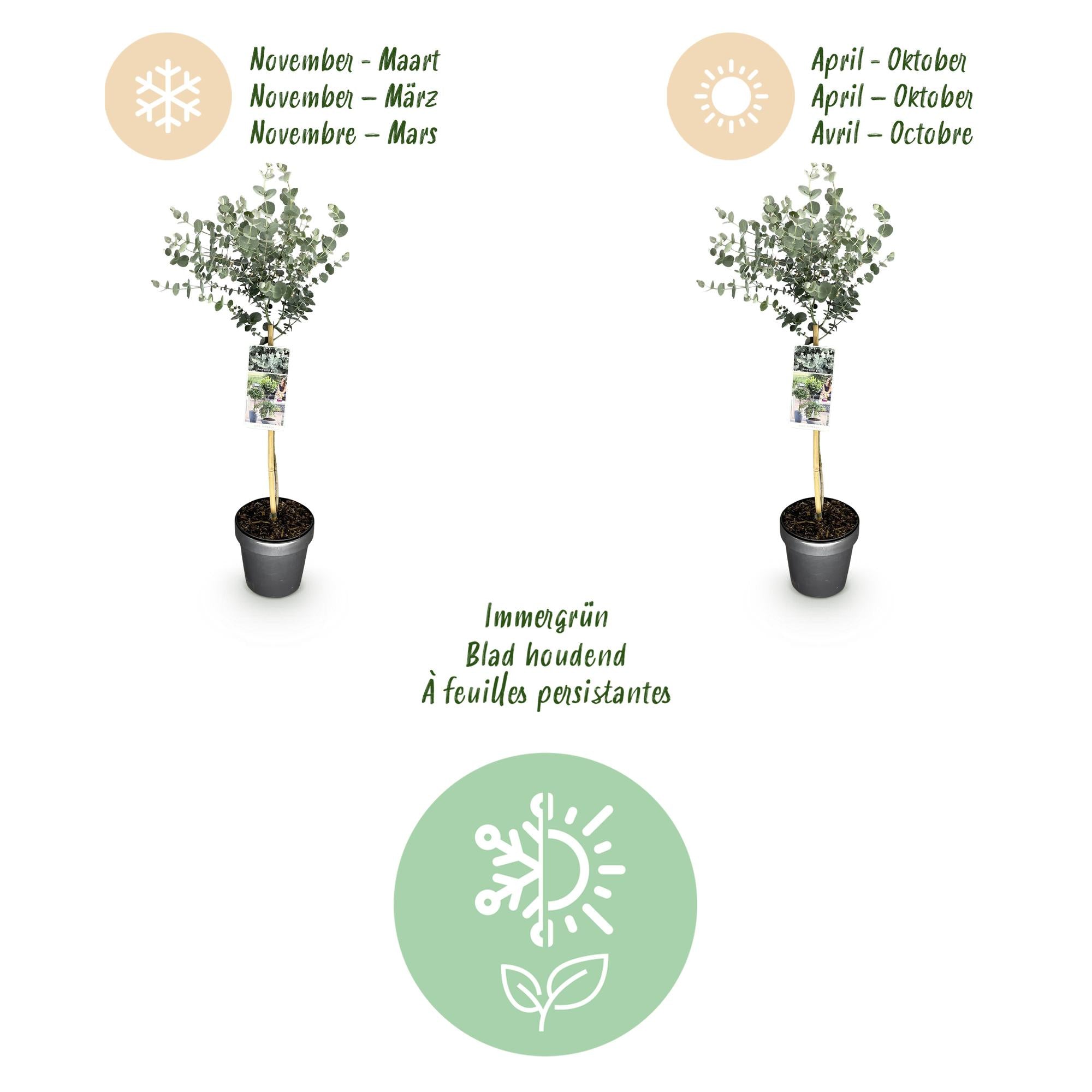 Met zijn elegante uitstraling en geurige bladeren is deze heester een geweldige aanvulling voor elke tuin. Of u nu een groene border wilt vullen of een stijlvolle pot op uw balkon wilt plaatsen, de Eucalyptus gunnii 'Azura'® past perfect in elk ontwerp.