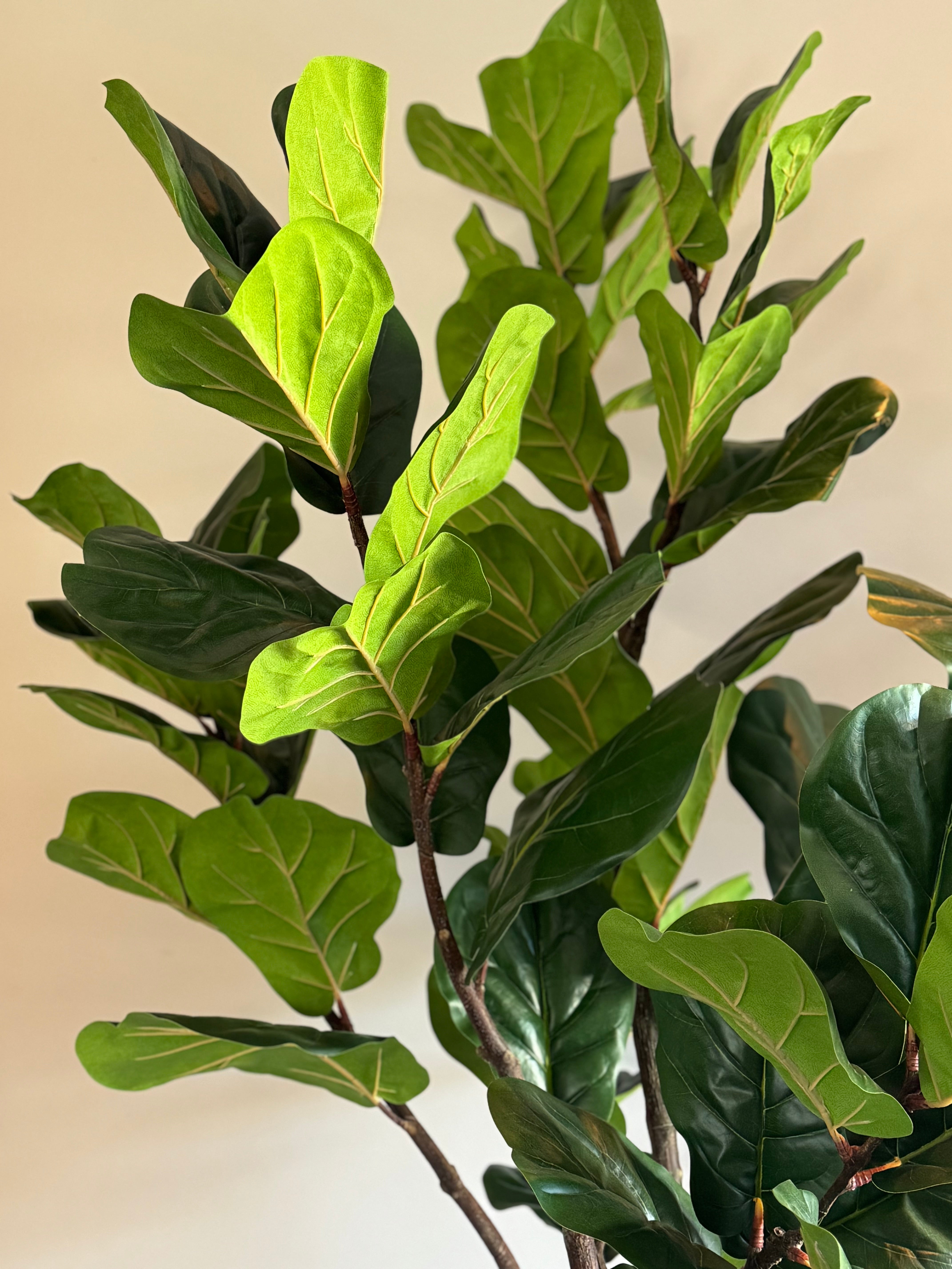 De zijden Ficus Lyrata van 200 cm is een echte blikvanger met zijn grote, glanzende bladeren in de kenmerkende vioolvorm. Deze populaire plant voegt direct een stijlvol en tropisch accent toe aan elk interieur. Door zijn royale hoogte en volle uitstraling is hij ideaal voor grote ruimtes zoals woonkamers, kantoren of hotellobby’s.