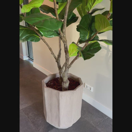 De zijden Ficus Lyrata van 220 cm is een echte blikvanger met zijn grote, glanzende bladeren in de kenmerkende vioolvorm. Deze populaire plant voegt direct een stijlvol en tropisch accent toe aan elk interieur. Door zijn royale hoogte en volle uitstraling is hij ideaal voor grote ruimtes zoals woonkamers, kantoren of hotellobby’s.