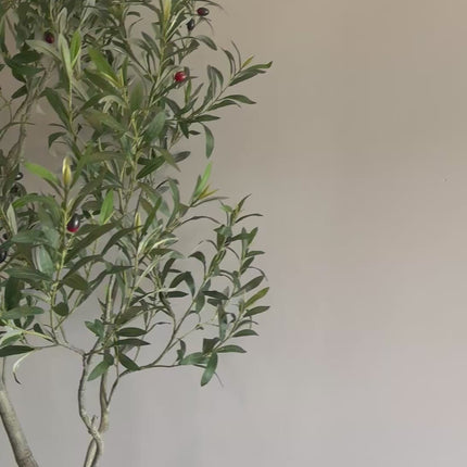 Deze indrukwekkende zijden olijfboom van 240 cm brengt mediterraanse rust en elegantie in elke ruimte. De verfijnde, grijsgroene blaadjes en subtiele takstructuur geven de boom een natuurlijke, levensechte uitstraling. Door zijn hoogte en slanke vorm is hij perfect als statement piece in een woonkamer, entree of horecaruimte.