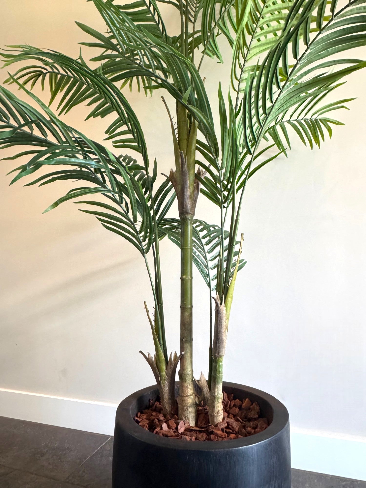 Breng tropische sfeer in huis met deze luxe zijden palm. Met zijn volle bladerdek en natuurlijke uitstraling is deze kunstpalm een echte eyecatcher in ieder interieur. Dankzij de hoogwaardige materialen blijft hij jarenlang mooi, zonder water of onderhoud.