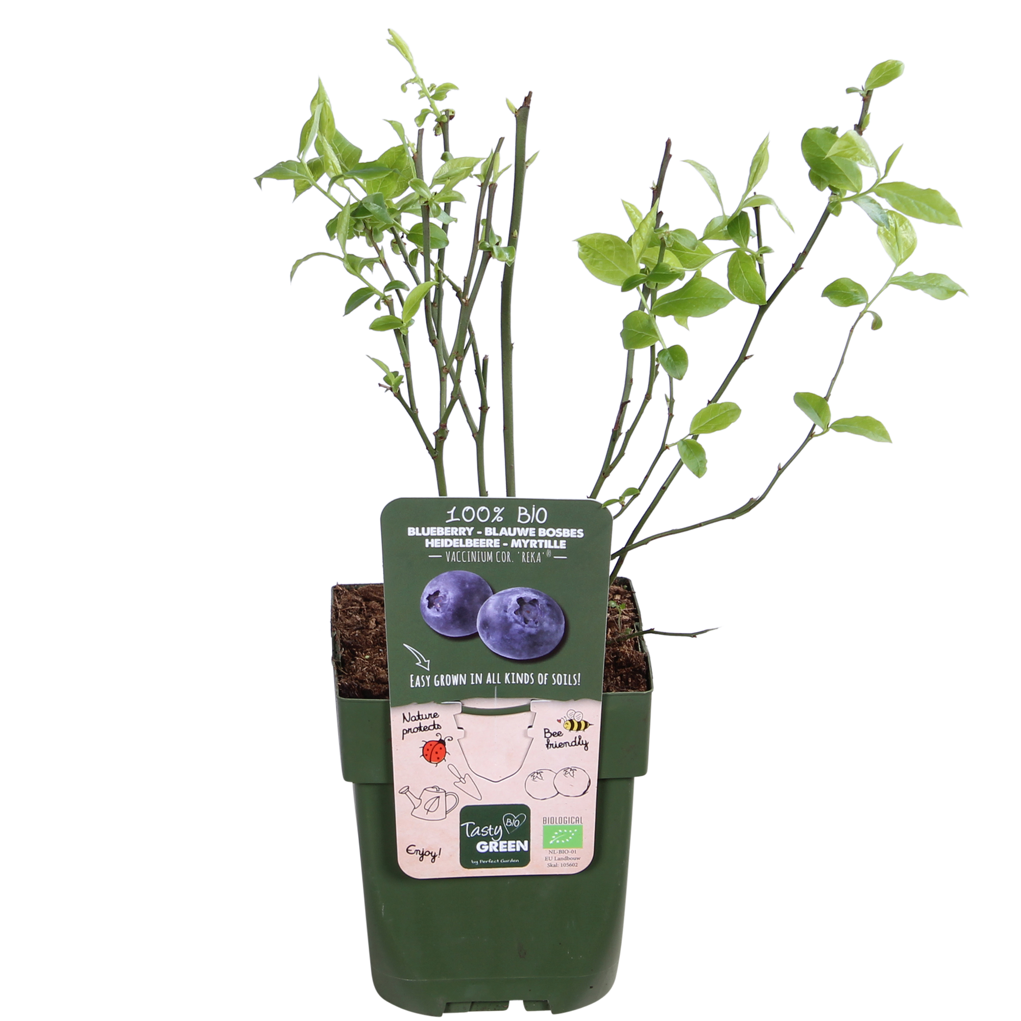 ‘Vaccinium corymbosum Reka’ ook wel bekend als blauwe bosbes. Het is een bekend ras die veel, grote en zoete vruchten geeft. Hij groeit goed op elke grondsoort. De struik heeft dunne takken en kleine frisgroene bladeren. De vruchten zijn stevig, lichtblauw met een goede smaak. Ze zijn te plukken half juli tot half augustus. Vers zijn de blauwe bessen een week te bewaren en je kan ze ook invriezen. De blauwe bes bloeit in trossen en de bloem is witcrème tot roze van kleur. De bloei is in de eerste helft van mei. Deze plant is geheel zelfbestuivend en heeft bijna geen verzorging nodig. De bladeren hebben een mooie oranjerode herfstverkleuring en vallen daarna af.